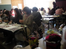 プリザーブドフラワーの加工方法から説明させていただきアレンジメントに入らせていただきました。