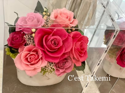 2021 · 11月 05日, 2021年 百貨店納品作品 プリフラトゥインクルフラワー協会(PTFA)本部校/プリザーブドフラワー教室&ギフト販売C’est Takemi(セ・タケミ)の小暮です。 当校の作品は「そごう大宮店7階 インテリア高級雑貨 食器キッチン売場」にて常時委託販売中しております。 今回、納品したアレンジは、バラが華やかで可愛いホットピンク中心のピンクグラデーション、アジサイやカスミ草、他葉物など全てプリザーブドフラワーを使った作品です。 tagPlaceholderカテゴリ: 百貨店販売